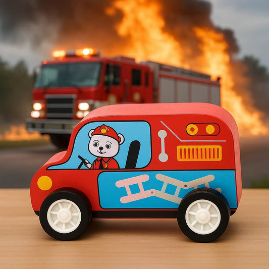 WUDLY Wooden Toy Cars Set for Kids (6 pcs) | Police, Ambulance, Taxi, School Bus, Fire Truck & Trash Truck