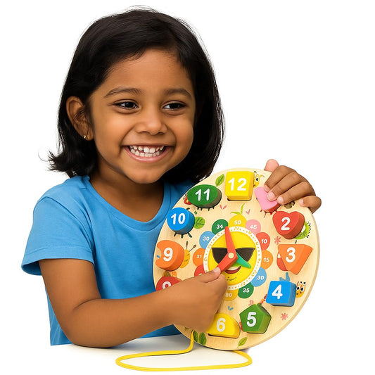 WUDLY Wooden Shape Sorting Clock Toy