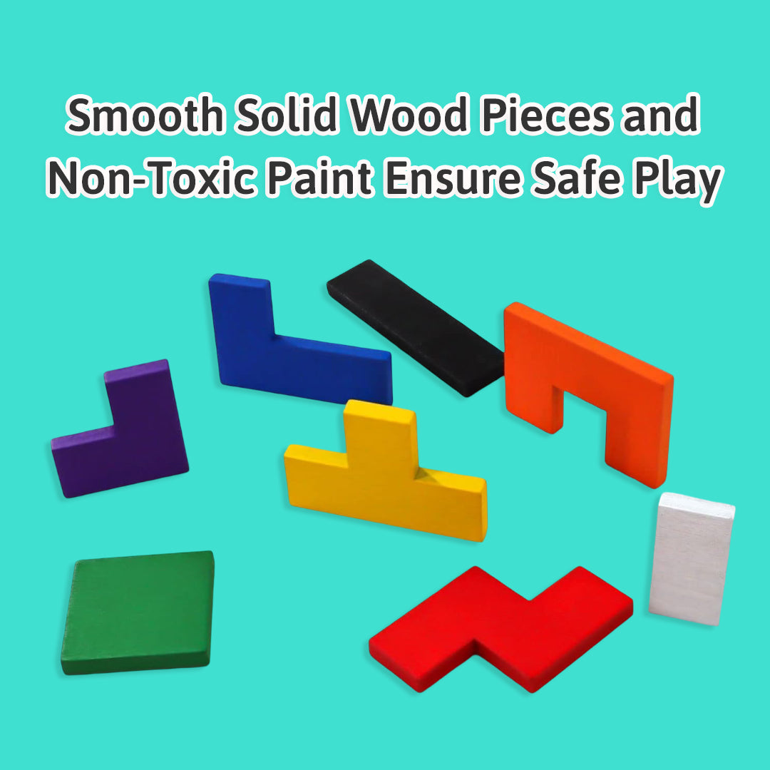 The Basic Russian Block Puzzle is a classic wooden toy that consists of interlocking geometric shapes, typically made from high-quality, non-toxic wood. Each block is about 5mm thick, making them easy for small hands to manipulate.