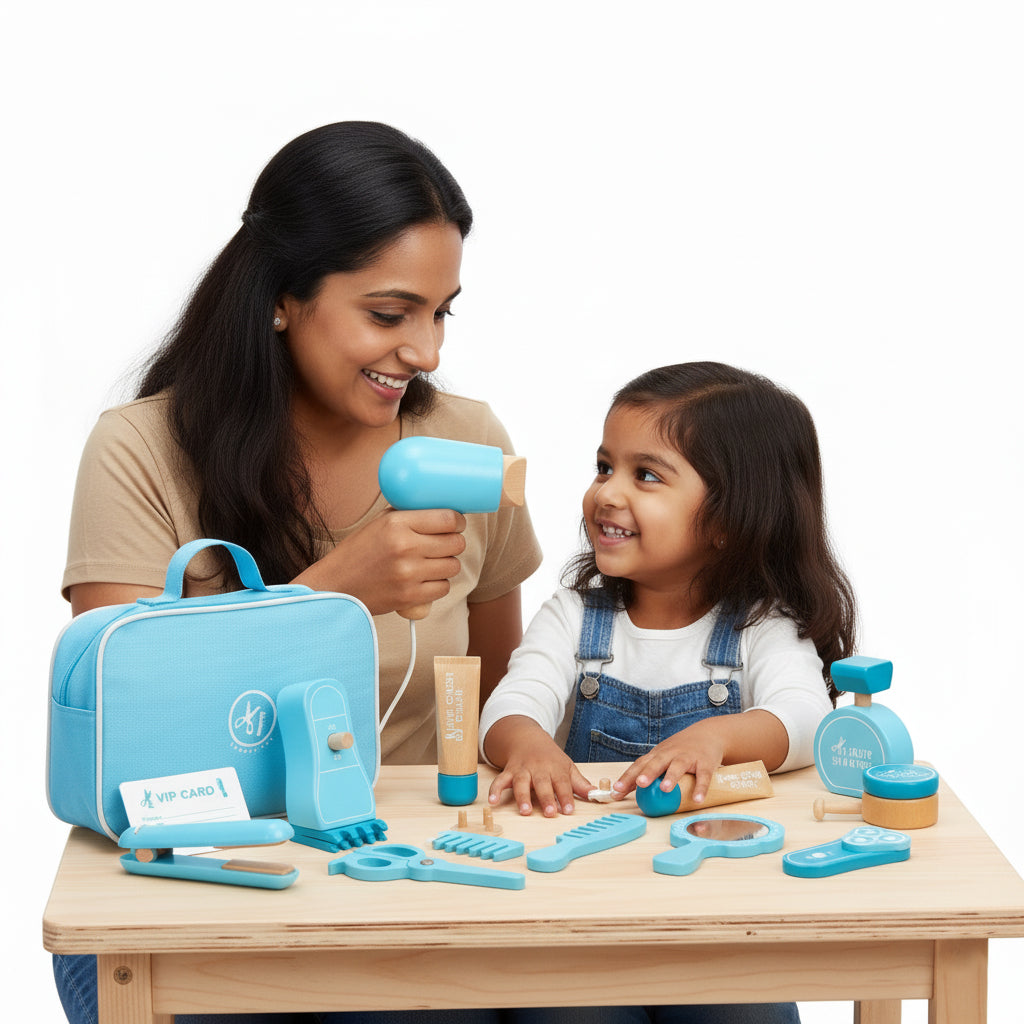 5. Crafted from high-quality, non-toxic wood, this toy ensures safety The wooden hair dresser is made of high-quality wood, and painted with non-toxic paint, beautiful and durable. They get made from natural wood and organic colors.