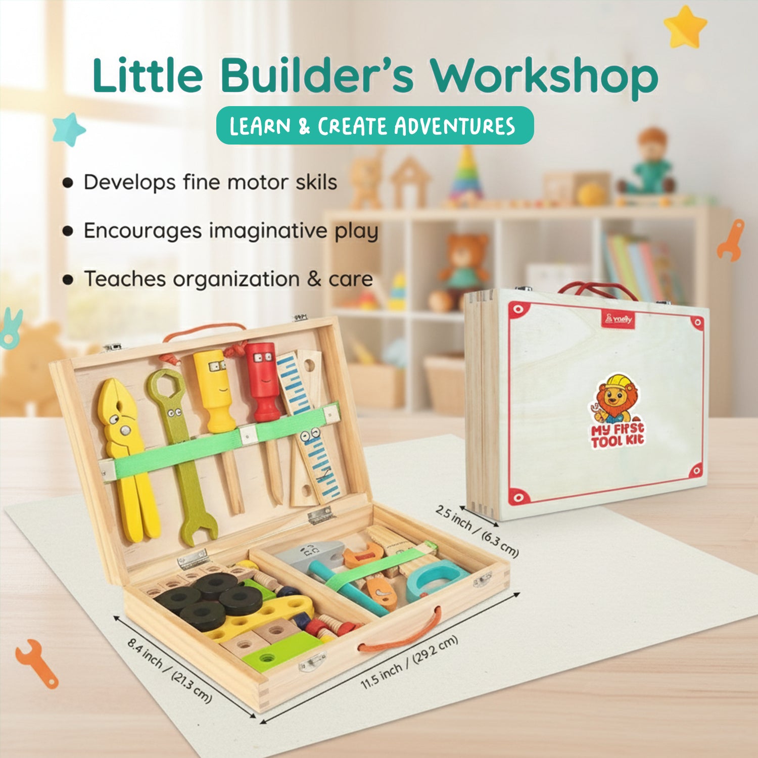 1. Creativity And Learning Also included is a wooden tool box that helps to keep the tools safe and tidy. Toys for boys and girls aged 3 to 5 years. It is also ideal for early preschool education to develop their natural skills this toy is best for children give to gift