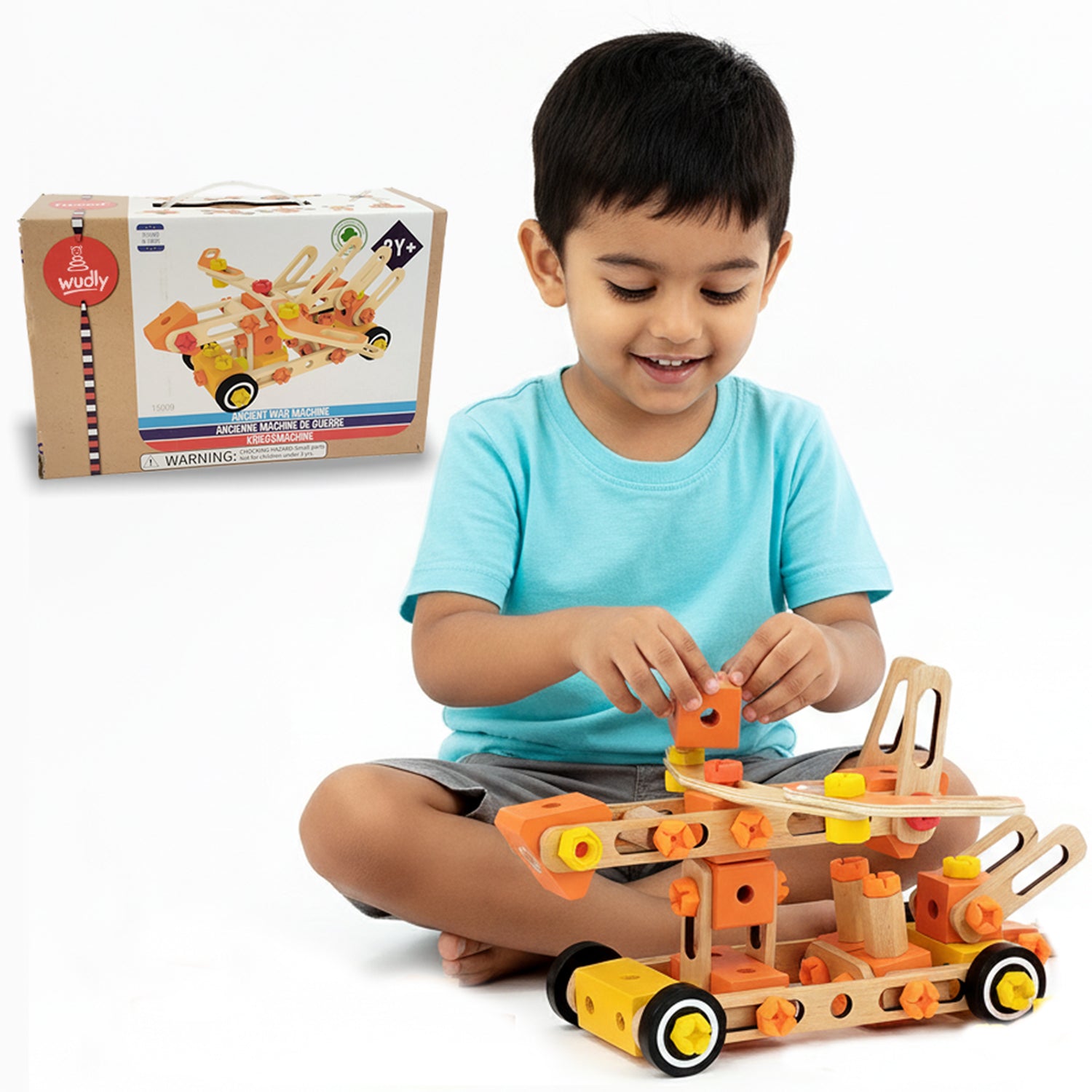 Wudly Wooden Ancient War Machine Construction Set | DIY Building Toy for Kids 3+ Years | Eco-Friendly Educational Wooden Vehicle | Creative Assembly Toy Gift for Boys & Girls