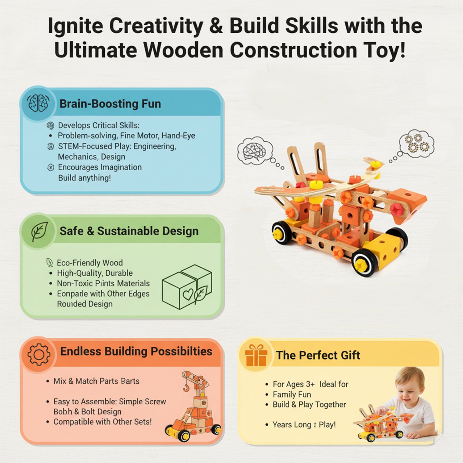 Premium Wooden Quality: Made from durable, eco-friendly wood with smooth edges and non-toxic colors, ensuring safe play for kids.