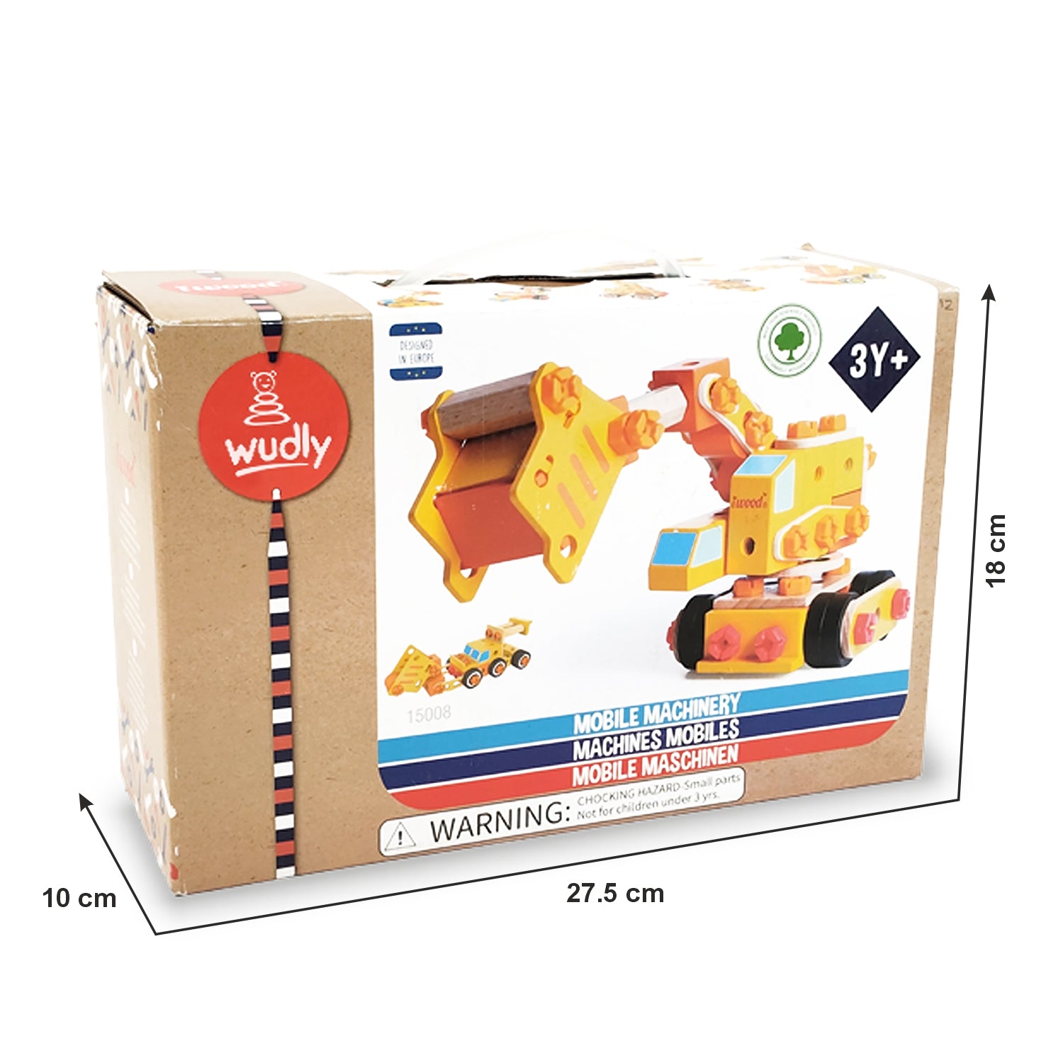 Wudly Wooden Construction Vehicles Set for Kids | Mobile Machinery Building Toy for 3+ Years | Eco-Friendly Educational Construction Toy Set | Creative DIY Wooden Truck Set for Boys & Girls